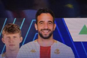但意甲联赛的转播团队似乎是不认识热那亚的这位新援——转播换人牌上显示被换上场的赫然是此前从曼联下课的教练阿莫林,转播方甚至还为他P上了热那亚的球衣图片。