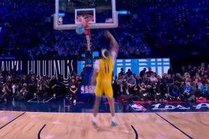 GIF-海斯第二球!抛球胯下换手暴扣!看着没怎么跳起来啊!